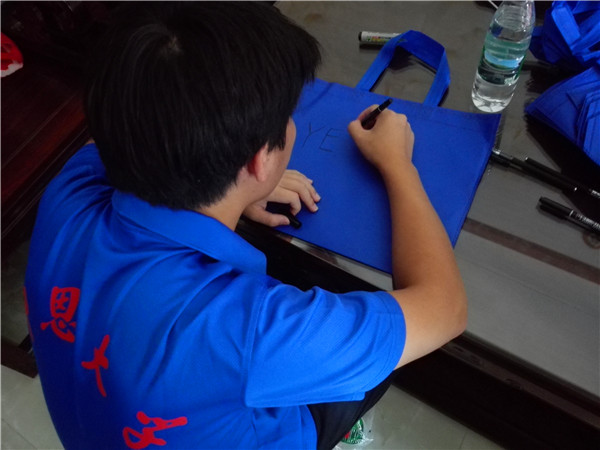 实践队员们积极引导着行人填写调查问卷,进一步了解当地的环境状况。当天下午,队员们来到鲤中向附近的居民发放特制的环保袋,目的是让大家能够重复利用这个环保袋,以减少塑料袋的使用,从而进一步减少白色垃圾的污染。