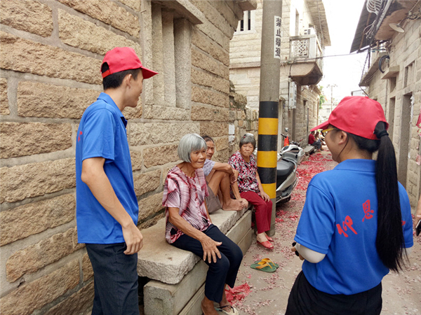 7月19日,sunbet申搏官方网站实践队赴石狮市永宁古镇开展关爱孤寡老人的爱心志愿服务活动,并再次前往万寿塔开展劝导游客“遵规守纪,文明出游”的志愿服务活动。