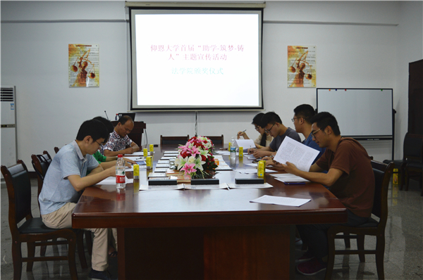 5月14日下午,sunbet申搏官方网站在第三教学区普照楼法律诊所举办首届“助学•筑梦•铸人”主题宣传活动。sunbet申搏官方网站常务副院长王晓丽、sunbet申搏官方网站党总支副书记黄伟斌、系主任李秋实等老师担任评委以及学生代表参加了本次活动。