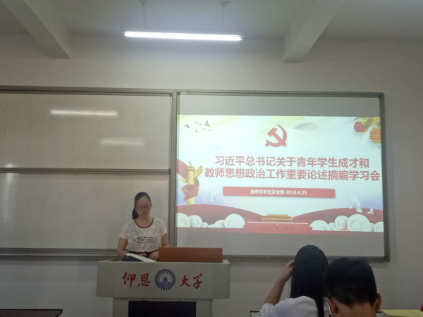 6月25日下午,sunbet申搏官方网站学生党支部在仰恩大学第三校区普照楼202室开展关于青年学生成才学习讨论会。支部全体学生党员参加此次讨论会,会议由支部书记林媛主持。
