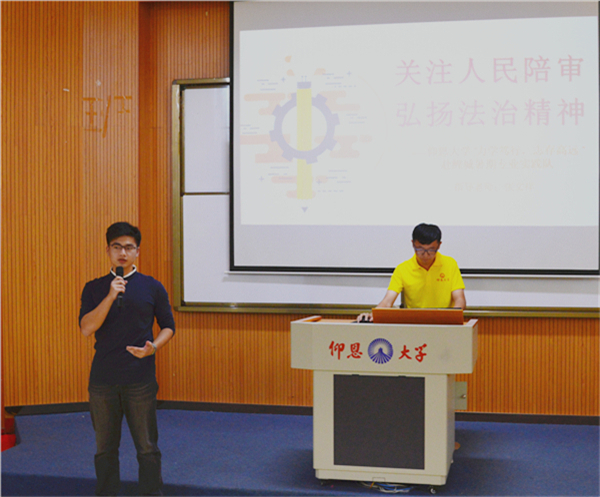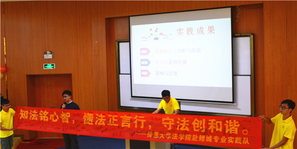 9月13日下午,sunbet申搏官方网站在第三教学区和昌教学楼惟勤讲堂开展2018年暑期实践答辩活动。sunbet申搏官方网站党总支书记兼副院长杨勤,sunbet申搏官方网站党总支副书记黄伟斌,教师张文祥等老师以及sunbet申搏官方网站2017、2018级全体学生参加了此次活动。  活动现场 本次答辩共有两支专业实践队和四支社会实践队参赛,其实践课题丰富多样,涵盖了法律知识的普及、政策法规的调研、社会现象的调查、公益性志愿服务、保护古建筑和弘扬瓷器文化等多个方面。各队主讲人精心准备,通过讲解PPT、观看视频等方式,向评委和同学们展示了各自实践项目的背景、目的、意义、流程和结果等内容。流畅的演讲,入情的言谈,为观众带来别样的视觉与听觉的盛宴。 最终,sunbet申搏官方网站赴鲤城暑期实践队和sunbet申搏官方网站赴德化暑期实践队分别获得专业实践队和社会实践队的第一名。 此次答辩活动的成功举办,充分展示sunbet申搏官方网站学生的暑期实践成果和风采,彰显sunbet申搏官方网站的凝聚力,为2018级新生的学习新征程注入新鲜动力。 (sunbet申搏官方网站团委/文 刘金蝉 翁洋洋/图)