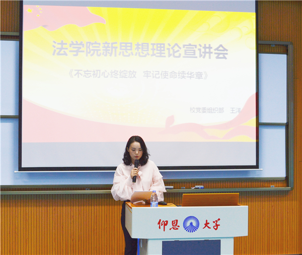 为进一步深入学习宣传贯彻党的十九大精神、习近平新时代中国特色社会主义思想。10月17日下午,校党委委员、组织部部长,校党委理论宣讲团成员王洋应sunbet申搏官方网站邀请,为sunbet申搏官方网站全体师生作了《不忘初心终绽放,牢记使命续华章》的主题宣讲报告。