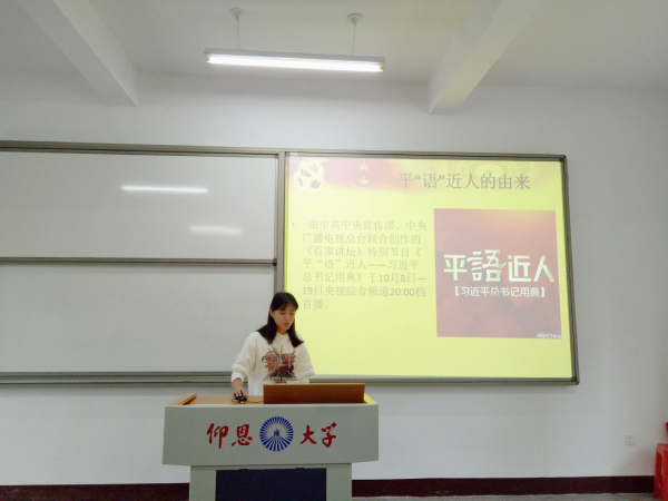 此专题活动主要以“贯彻学习习近平系列讲话”为主题,重温习近平总书记重要的讲话和论述其中的用典。会上,郑少芳、张容等同志分别从“平”语近人和“习近平强调选人用人严把四关”等方面入手,讲述了作为大学生党员应领悟经典,感受平“语”近人,把政治标准放在首位,从一点一滴中完善自己,时刻保持人民公仆本色。