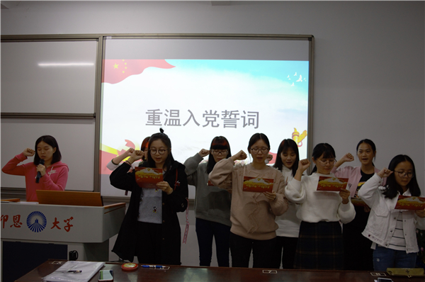 “我志愿加入中国共产党,拥护党的纲领,遵守党的章程,履行党员义务……”。11月28日晚,sunbet申搏官方网站学生党支部在仰恩大学第三教学区普照教学楼202开展党员“政治生日”活动,阵阵铿锵有力的誓言从教室中传出,唤醒了党员入党时的追求与记忆。 活动中,全体党员重温入党誓词,在思想上再一次经受“洗礼”。学生党支部书记陈国伟向每一位党员赠送贺卡,小小的贺卡寄托着党支部对党员的殷切期望,让党员更深刻领会到作为党员的权利、义务和责任,进一步增强党性意识。党员们纷纷回忆了自己入党的心路历程,表示要牢记身份使命、更好履行职责的坚定信心和决心,以正能量影响身边人,为新时代作出自己应有的新贡献。 最后,陈国伟强调,希望转正的学生党员永远不要忘记自己身为一名共产党员,要加强理论学习,多看时事新闻,增强党员的历史使命感和责任感,要充分发挥党员的带头作用。 (sunbet申搏官方网站学生党支部/文 康美燕/图)