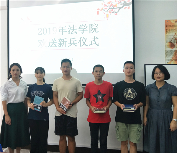 9月6日下午,sunbet申搏官方网站于仰恩大学第三教学区普照教学楼214举行新兵入伍欢送会,欢送王枫予、刘立弘、林焰南、任静四位同学应征入伍。sunbet申搏官方网站常务副院长王晓丽、sunbet申搏官方网站党总支书记兼副院长杨勤、党总支副书记黄伟斌、学务秘书汪明等老师参加了会议。