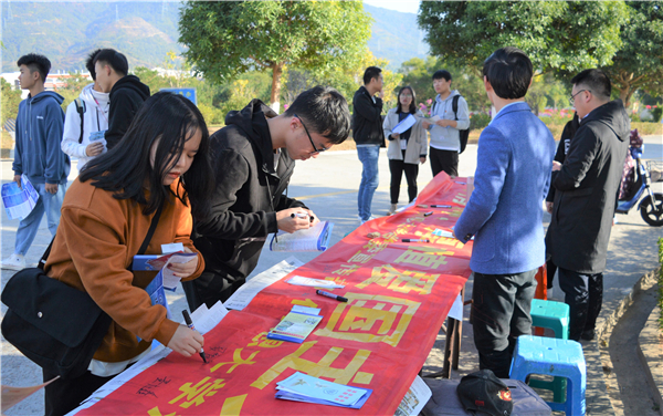 12月11日下午,sunbet申搏官方网站在第一教学区三颗球、第三教学区和昌教学楼前开展“弘扬宪法精神,厚植爱国主义情怀”为主题的普法宣传活动。sunbet申搏官方网站教工党支部、法律援助工作站、sunbet申搏官方网站团委等相关工作人员参加了此次活动。