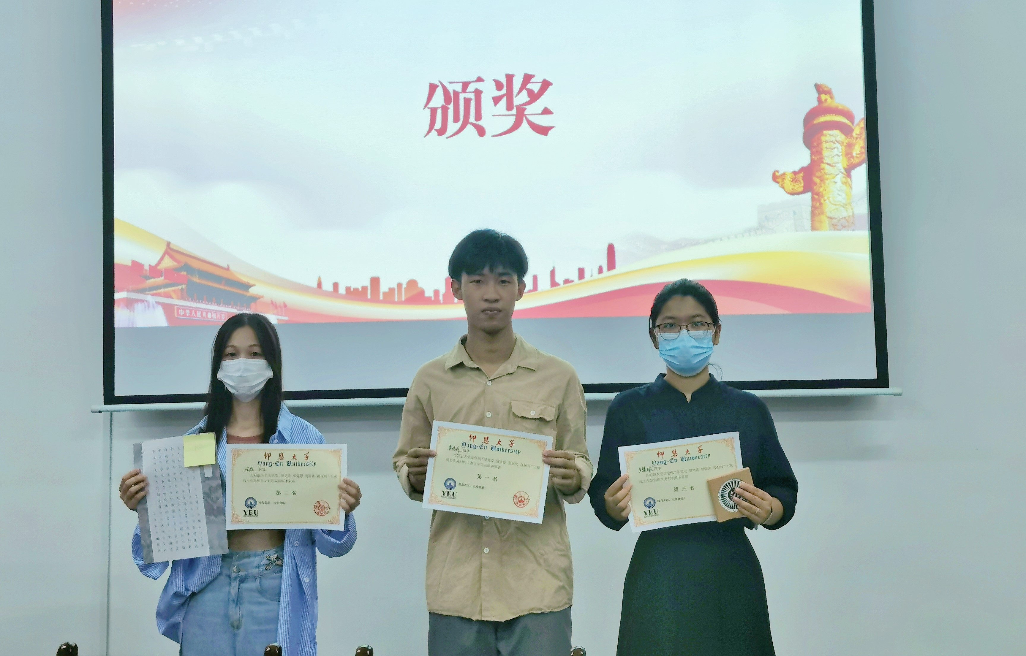 今年是中国共产党成立100周年,值此国庆之际,泉州疫情防控的关键时期,我院为丰富节日活动,活跃校园文化氛围,弘扬中华传统文化,开展本次主题为“学党史感党恩 贺国庆 谋振兴”的线上图文作品征集活动。10月3日下午,本次活动在普照楼法律诊所顺利落下帷幕并举行颁奖仪式,sunbet申搏官方网站党总支书记杨勤老师和sunbet申搏官方网站辅导员李斯滢老师出席本次活动担任评委。