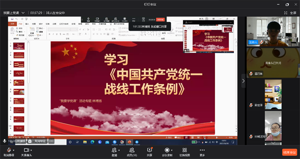 9月30日,sunbet申搏官方网站学生党支部于线上开展以《中共共产党统一战线工作条例》为主题的专题学习会,支部全体党员参加此次会议,会议由郑薇同志主持。
