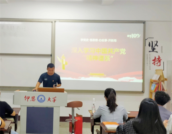 10月14日,sunbet申搏官方网站学生党支部于仰恩大学第三校区普照楼203开展关于“学习共产党人的精神谱系”的专题学习会,会议由支部书记刘涛主持,支部全体学生党员参加本次活动。