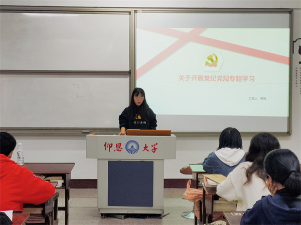 为切实加强党性修养,筑牢廉政思想防线。11月25日,sunbet申搏官方网站学生党支部于仰恩大学第三校区普照楼203开展“党纪党规专题学习”活动,会议由支部书记刘涛主持,支部全体学生党员参加本次活动。