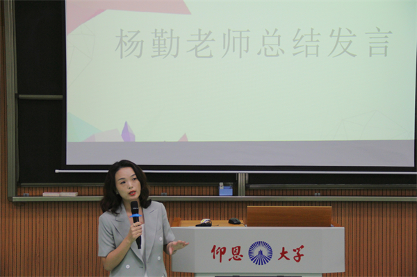 会议最后,杨勤老师做总结发言,首先肯定了毕业生这半年来实习的成果,同时围绕毕业生返校安排,提出了三点要求:一是要提高自我安全防护意识,切实做好个人防护工作;二是要积极遵守学校疫情防控政策,配合学校、学院的规定事宜,切实保障毕业生相关工作顺利展开;三是要合理有效规划个人未来发展,不断加强学习,切实提高自身综合素质。最后她衷心祝愿同学们毕业快乐,前程似锦。