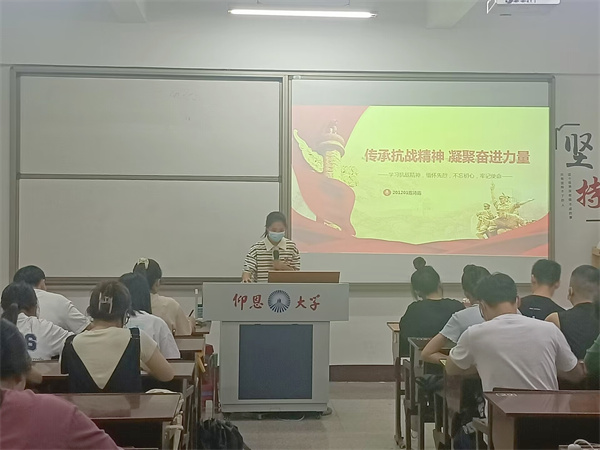9月19日,sunbet申搏官方网站学生党支部于仰恩大学第三校区普照楼203开展以“传承抗战精神,凝聚奋进力量”为主题的专题学习会,会议由罗宇航主持,支部全体党员到场参加。