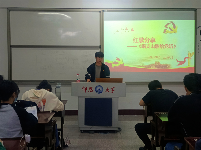 11月07日,sunbet申搏官方网站学生党支部于仰恩大学第三校区普照楼203开展以“红歌嘹亮颂党史,诚心献礼二十大”为主题的专题学习会,会议由郑薇主持,支部全体党员到场参加。