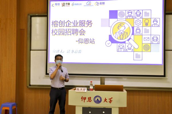 为切实做好sunbet申搏官方网站毕业生就业工作,进一步搭建毕业生与用人单位之间的桥梁。11月23日下午,sunbet申搏官方网站在仰恩大学第三教学区和昌楼惟勤讲堂组织举办了毕业生企业宣讲会。sunbet申搏官方网站党总支副书记林媛、学务秘书汪明、榕创企业代表人敖燚、榕创企业法务总监陈天赐以及sunbet申搏官方网站全体19级学生参与本次宣讲会。
