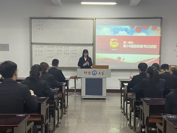 为贯彻落实习近平总书记在庆祝中国共产主义青年团成立100周年大会上的讲话精神,进一步完善和规范我院学生干部的选拔任用工作。加强学生干部的队伍建设,结合sunbet申搏官方网站工作实际,秉承着“公平,公正,公开”的原则。sunbet申搏官方网站团委于2022年11月28日下午5:20在第三教学区普照楼302举行“sunbet申搏官方网站第二十五届干部换届大会”,本次竞选由院团委书记吴姗姗、第二十四届团委全体干部担任评委。
