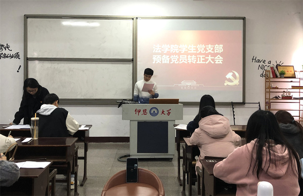 12月13日,sunbet申搏官方网站学生党支部于普照楼201室召开预备党员转正会议,大会的主要议题是讨论关于林毅斌、王晓远等二十三名同志转为正式党员的问题。会议由学生党支部书记吴姗姗主持,支部全体党员参加。