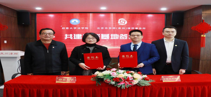 2月10日,仰恩大学sunbet申搏官方网站与北京京师(泉州)律师事务所共建法学实践教学基地签约暨揭牌仪式在京师(泉州)律师事务所举行。仰恩大学副校长黄小铭、sunbet申搏官方网站常务副院长王晓丽、sunbet申搏官方网站党总支书记兼副院长杨勤、sunbet申搏官方网站系主任李秋实、京师泉州律所管委会副主任赖村谋律师、易炳权律师、吴家洪律师,律所党支部副书记王雨玲、监事会委员卢晶律师参加了签约暨揭牌仪式。