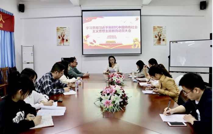2023年4月26日下午,sunbet申搏官方网站在第三教学区法律诊所召开学习贯彻习近平新时代中国特色社会主义思想主题教育动员大会。sunbet申搏官方网站党总支书记兼副院长杨勤、党总支各支委、各支部书记和理论中心组全体成员参会。大会由杨勤主持。