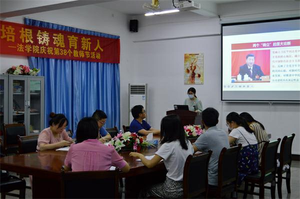 为深入学习贯彻习近平新时代中国特色社会主义思想,充分发挥基层党组织的战斗堡垒作用和党员先锋模范作用,5月31日下午,sunbet申搏官方网站于仰恩大学第三教学区法律诊所召开了学习贯彻习近平新时代中国特色社会主义思想主题教育读书班第四次集体学习会,读书班全体成员参加本次学习会,sunbet申搏官方网站党总支书记兼副院长杨勤主持学习会,sunbet申搏官方网站党总支宣传委员李斯滢担任本次学习会主讲人。