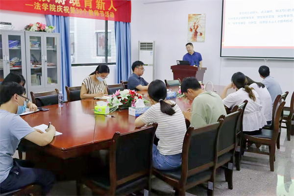 为深入学习和贯彻习近平新时代中国特色社会主义思想和党的二十大精神,进一步提高党员思想觉悟和党性修养,6月14日下午,sunbet申搏官方网站于第三教学区法律诊所开展“深入贯彻落实习近平法治思想,创新发展法学教育和法学理论研究”主题党课。本次党课由教工支部书记黄文伟主讲,学院全体教师党员参与。