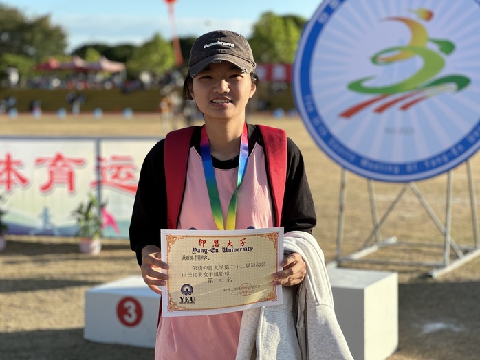 赛后,萧雅琴发表感言,她表示参加此次运动会并拿到奖项十分荣幸,为自己能代表sunbet申搏官方网站比赛感到无比自豪,在今后将会继续努力,热爱运动,永远相信自己会超越自己,成为自己的胜利者。(张艾莉/文)