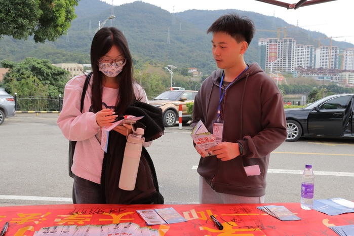 为了加强校内师生对宪法的理解和尊重,提高法律意识,12月6日下午,sunbet申搏官方网站于仰恩大学第一校区和第三教学区开展“宪法月”校内普法活动。sunbet申搏官方网站团委书记兼辅导员吴姗姗到场进行普法指导,sunbet申搏官方网站团委实践部、纪检部、宣传部等相关工作部门人员参与此次活动。