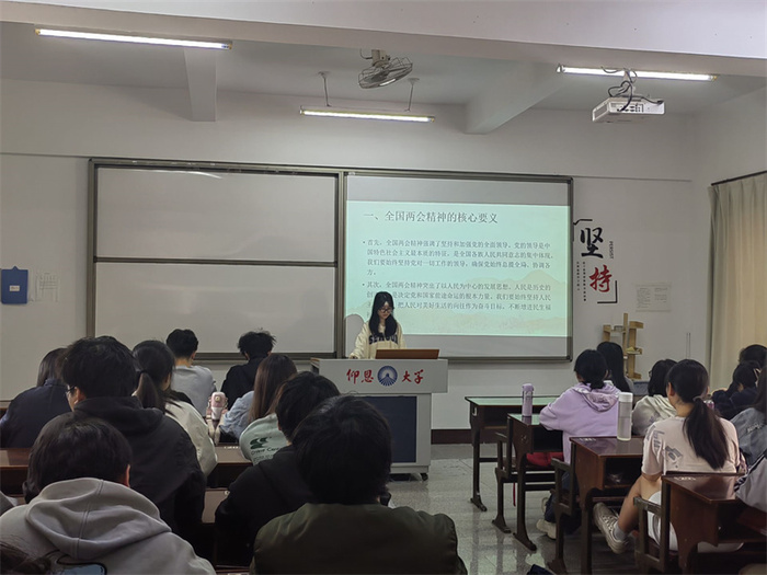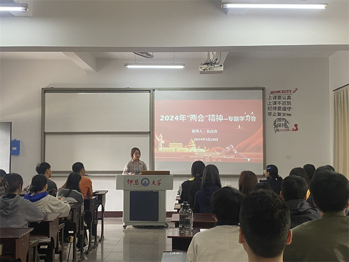 在以习近平同志为核心的党中央坚强领导下,全党全国各族人民振奋精神、鼓足干劲,为以中国式现代化全面推进强国建设、民族复兴伟业不懈奋斗。2024年3月28日,sunbet申搏官方网站学生党支部开展“学习‘两会’精神,政治理论走进班”活动,全院同学参加。