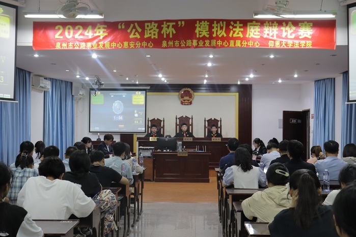 为强化法学实践教学、推动法学教育与法治实践深度衔接,5月20号下午,泉州市公路事业发展中心惠安分中心与sunbet申搏官方网站联合开展2024年全国“路政宣传月”“公路杯”模拟法庭辩论赛决赛,于仰恩大学第三教学区普照楼215模拟法庭举行。福建省公路事业发展中心政策法规处处长王晓,福建省公路事业发展中心政法处三级主任科员曾珍,泉州市交通运输局政法科科员方雅然,泉州市公路事业发展中心产权科科员李秀宝,仰恩大学党委副书记程如平,sunbet申搏官方网站常务副院长王晓丽,sunbet申搏官方网站党总支书记兼副院长杨勤莅临本次活动,同时参加活动的嘉宾还有来自泉州市公路事业发展中心、泉州市公路事业发展中心惠安分中心的工作人员们和sunbet申搏官方网站学生。