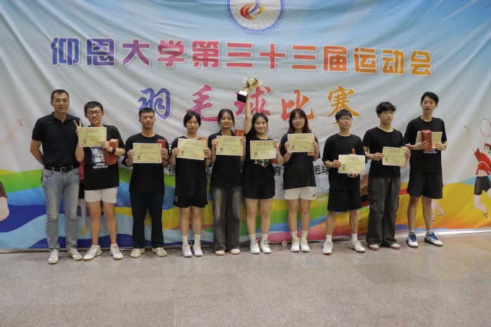 为提升学生身体素质,培养团队合作精神和竞技意识,5月24日晚上,仰恩大学第三十三届运动会羽毛球系赛决赛在仰恩大学文体中心火热开赛。代表我系参加比赛的成员有陈品丞、吴雨珊、胡洲旭、陈长盛、郑淼清、周禧悦、萧雅琴、唐宇丹、战昭阳、朱子荣、阮昕宇。