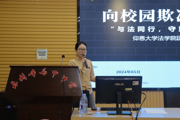 活动过程中,sunbet申搏官方网站讲师陈喆敏以“校园欺凌是什么?”、“校园欺凌带来怎样的危害?”、“校园欺凌应该怎样合理预防?”、“对于校园欺凌应该如何与应对?”四个问题开篇,点明了本次讲座普法宣传的四个主题板块,向现场的中学生系统的介绍了校园欺凌,并进一步让中学生清楚地认识到校园欺凌的表现形式和危害,从而增强自我防范意识,避免成为受害者。同时强调了,校园欺凌可分为直接欺凌和间接欺凌两种分类模式,以及相 关对应刑法法律规定,鼓励学生在面对校园欺凌时,敢于挺身而出,维护正义,不做冷漠的旁观者。