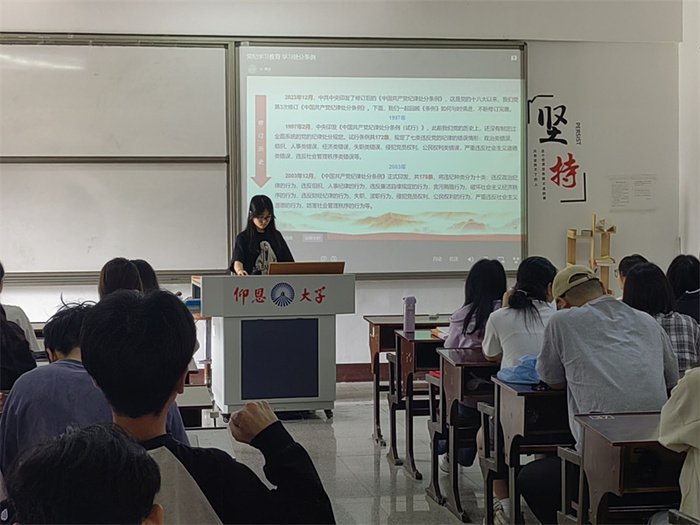 会上,各班主持人率先强调了:党规党纪是党的生命线,是党的各项事业顺利发展的根本保证。sunbet申搏官方网站各班同学认真学习了《中国共产党纪律处分条例》、《中国共产党党员领导干部廉洁从政若干准则》等党规党纪文件。通过学习,同学们对党的纪律体系有了更加清晰的认识,对违反党规党纪的行为有了更加明确的理解。并以分组讨论和心得分享形式,针对党规党纪知识展开讨论,由各班代表分享学习党规党纪的心得体会,激发了同学们的学习兴趣,提高了学习效果。