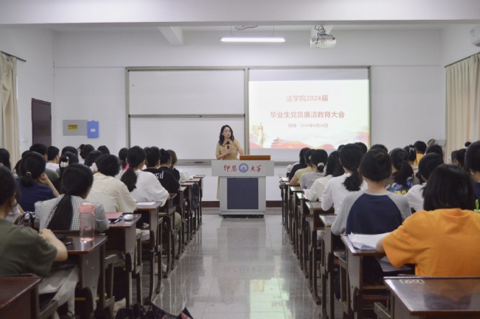 为加强廉洁意识,提高党性修养,铸就廉洁品格,助力毕业生党员在新的岗位上书写时代华章。6月24日,sunbet申搏官方网站学生支部于普照楼204召开毕业生党员廉洁教育大会,由sunbet申搏官方网站党总支书记兼副院长杨勤主持,sunbet申搏官方网站党总支副书记林媛、sunbet申搏官方网站学生党支部书记吴姗姗出席,全体毕业生党员参加。