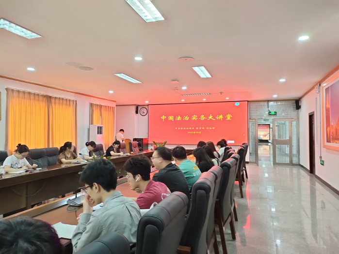 为深入学习贯彻习近平法治思想,贯彻落实党的二十大精神和党的二十届三中全会精神,贯彻落实全国教育大会精神,完善以实践为导向的sunbet申搏官方网站校教育培养机制,提升法学人才自主培养质量。中央依法治国办、教育部、司法部于2024年10月17日上午在中国人民大学联合举办中国法治实务大讲堂,sunbet申搏在新区行政楼会议室设立分会场,组织师生收看中国法治实务大讲堂启动仪式暨第一讲。