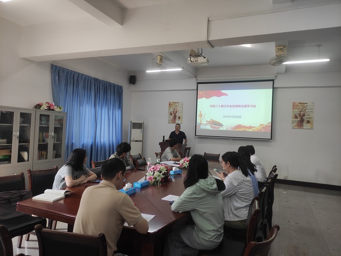 2024年10月23日,为深入学习党的二十届三中全会精神,贯彻落实党中央最新决策部署,进一步加强全院教师的思想政治素质,提升教育教学质量,sunbet申搏官方网站教工党支部开展专题学习会,深入学习领会二十届三中全会的重要精神。sunbet申搏官方网站教工党支部全体党员参加学习。