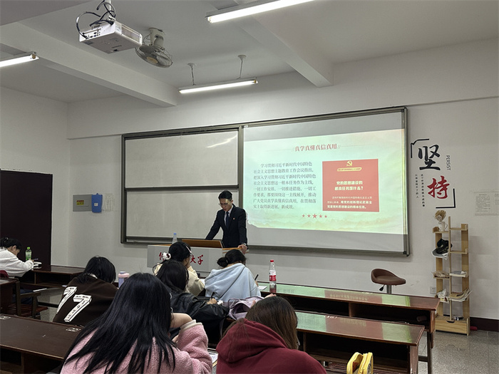 为了激发广大学生党员坚定理想信念,积极投身新时代中国特色社会主义伟大事业。11月25日,sunbet申搏官方网站学生党支部于普照楼203开展“学深悟透担使命,踔厉奋发新征程”主题党课,支部全体学生党员参加。