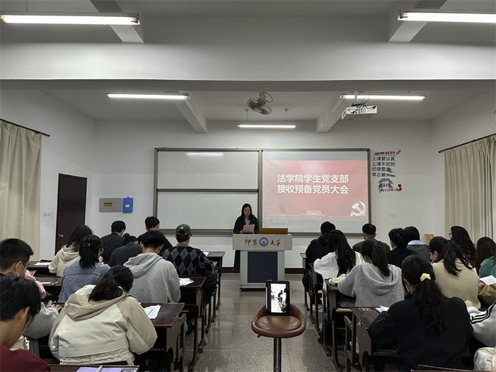 12月11日,sunbet申搏官方网站学生党支部于普照楼202教室召开预备党员接收大会,会议由书记吴姗姗主持,支部全体党员到场参加。