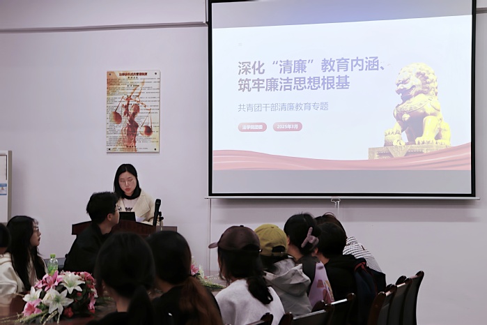 会议伊始,吴姗姗发表了讲话。她强调,共青团干部是青年学生的骨干力量,肩负着引领青年、服务青年的重要使命。作为新时代的青年干部,必须牢固树立廉洁意识,坚守道德底线,做到青正廉洁、勇于担当。她结合近年来高校廉政建设的典型案例,深入剖析了廉洁自律的重要性,并号召全体团干部以身作则,发挥模范带头作用。随后,吴姗姗围绕“深化青廉教育内涵、筑牢廉洁思想根基”主题,为与会团干部上了一堂生动的廉政教育课。她从党纪法规、团内纪律、个人修养等多个角度,详细阐述了共青团干部如何在实际工作中践行廉洁自律的要求。她指出,青廉教育是共青团干部队伍建设的重要内容,共青团干部要时刻保持青醒头脑,杜绝形式主义、官僚主义,坚决抵制不正之风,努力营造风青气正的团组织氛围。学院将以此次专题会为契机,进一步健全廉政教育机制,常态化开展廉政学习和警示教育。