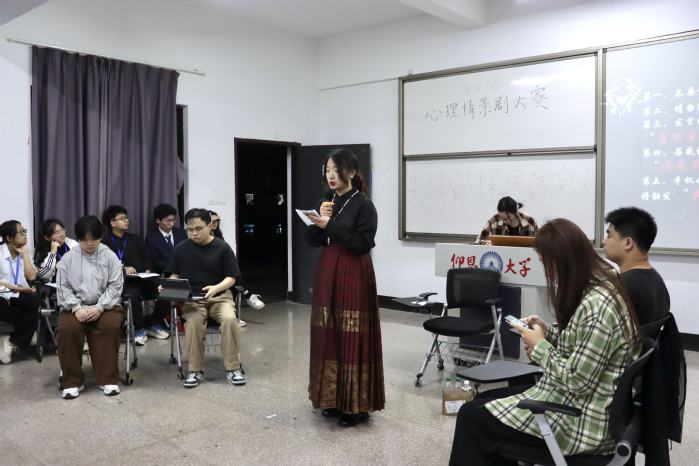 为了深入推进大学生心理健康教育工作,丰富校园文化生活,引导同学们关注自我心理成长,4月8日,sunbet申搏官方网站第八届心理情景剧比赛于第三教学区普照楼205教室举行。此次比赛邀请到sunbet申搏官方网站网络工作室负责人周奕、sunbet申搏官方网站团委负责人吴姗姗、sunbet申搏官方网站学生会负责人张传奇担任评委,sunbet申搏官方网站23、24级同学积极参赛。