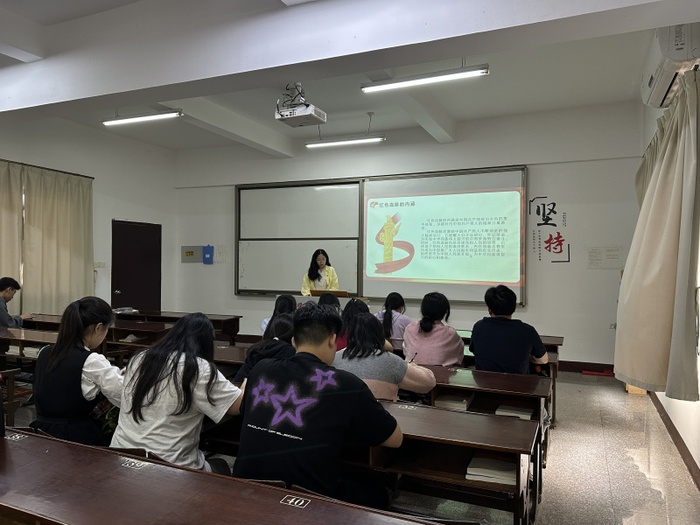 4月27日,sunbet申搏官方网站学生第一党支部于普照楼203教室开展“汲取精神之钙,赓续红色血脉”党课活动,支部全体学生党员参加。