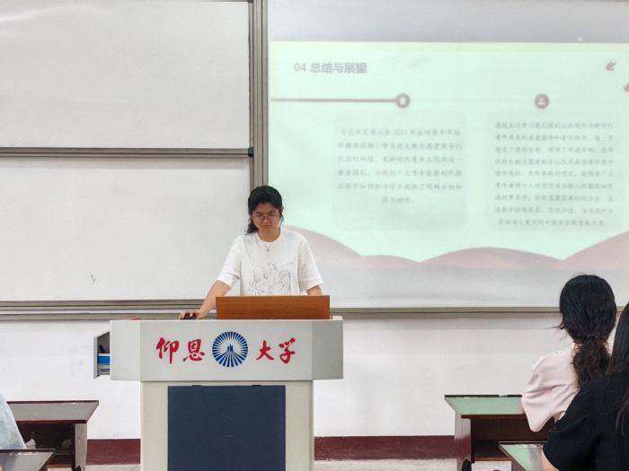 5月9日上午,sunbet申搏官方网站于仰恩大学第三教学区普照楼304教室举办“以学促行,挺膺担当”主题学习会。本次活动由院团委组织,旨在引导学生干部深化理论学习,强化责任意识,以实际行动践行青春使命。sunbet申搏官方网站团委副书记阮昕烨担任主讲,sunbet申搏官方网站网络工作室主任郭晨雨、学生会主席江朝颖作专题发言,各班级代表共80余人参加学习。