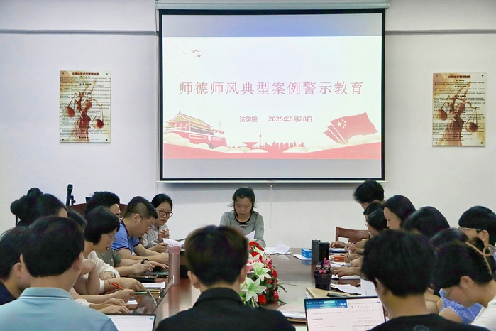为深入贯彻落实教育部关于加强新时代高校教师队伍建设的重要指示精神,切实强化师德师风建设,筑牢教师廉洁从教、规范执教的思想防线,5月28日,sunbet申搏官方网站在普照楼法律诊所开展师德师风典型案例警示教育大会。本次会议由sunbet申搏官方网站党总支书记兼副院长杨勤主讲,sunbet申搏官方网站全体教职工参加。