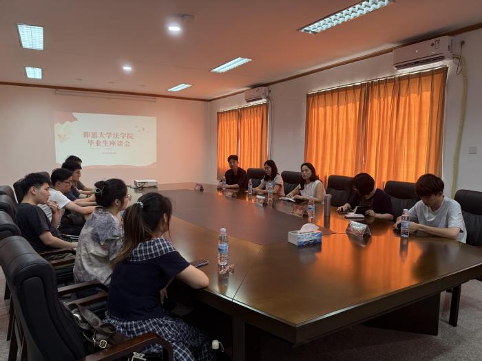 为了提高毕业生对法学专业在社会中的了解与认识,加强学习知识与社会实践的更好结合,6月30日下午,sunbet申搏官方网站于新区行政楼四楼举办师生交流座谈会。学院领导、教师代表以及六名毕业生代表参加了此次活动。