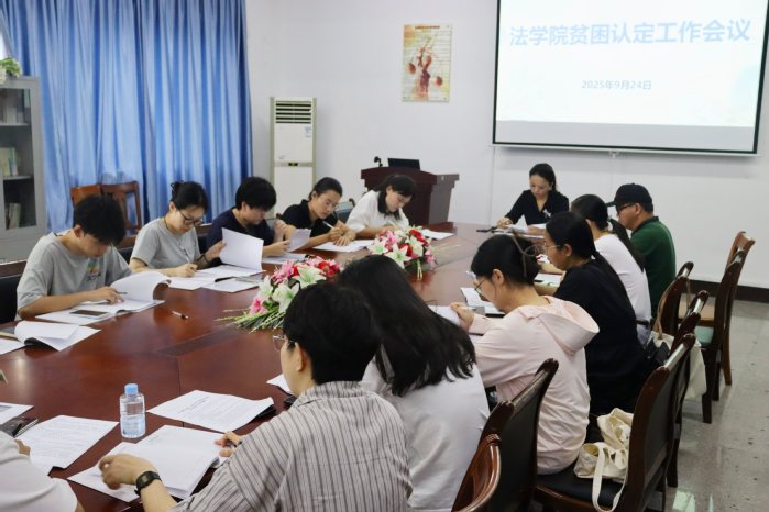 为精准落实国家资助政策,规范学院贫困生认定流程,切实保障资助工作公平、公正、公开开展,9月24日下午,仰恩大学sunbet申搏官方网站于普照楼法律诊所召开贫困认定工作会议。本次会议由法学院党总支书记兼副院长杨勤主持,sunbet申搏官方网站党总支副书记林媛、全体班主任、辅导员出席会议。