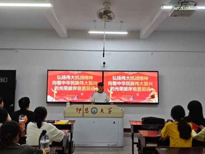 为深入学习贯彻习近平新时代中国特色社会主义思想,弘扬伟大抗战精神,激励青年学子在新时代新征程中勇担使命,sunbet申搏官方网站于2025年9月组织各班级开展以弘扬伟大抗战精神,向着中华民族伟大复兴的光辉彼岸奋勇前进为主题的政治理论学习活动,引导同学们铭记历史、缅怀先烈,以昂扬斗志投身法治中国建设,为推进中华民族伟大复兴贡献青春力量。