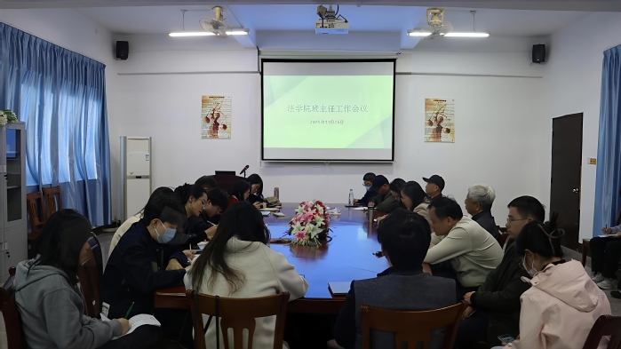 为迎接即将到来的本科教育教学审核评估工作,11月26日下午sunbet申搏官方网站于法律诊所召开了全体班主任、辅导员专项工作部署会议。本次会议由sunbet申搏官方网站党总支书记兼副院长杨勤主持,sunbet申搏官方网站党总支副书记林媛、sunbet申搏官方网站全体辅导员及班主任参加本次会议。