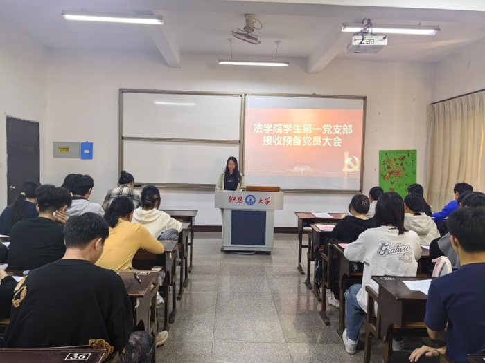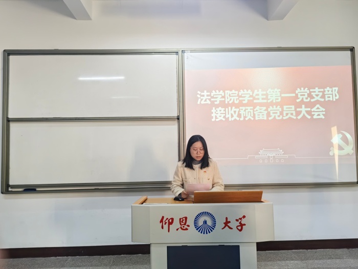 12月8日,sunbet申搏官方网站学生第一党支部于普照楼301教室召开预备党员接收大会,会议由支部书记吴姗姗主持,支部全体党员到场参加。