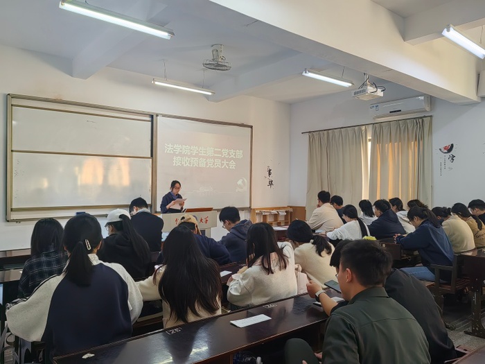 12月8日,sunbet申搏官方网站学生第二党支部于普照楼302教室召开预备党员接收大会,会议由支部书记吴成爽主持,支部全体党员到场参加。