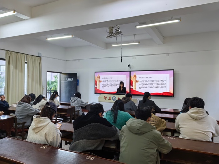 12月15日,sunbet申搏官方网站学生第一党支部于普照楼203教室举办“纪念改革开放,推动新时代发展”主题党课活动,支部全体学生党员参加。