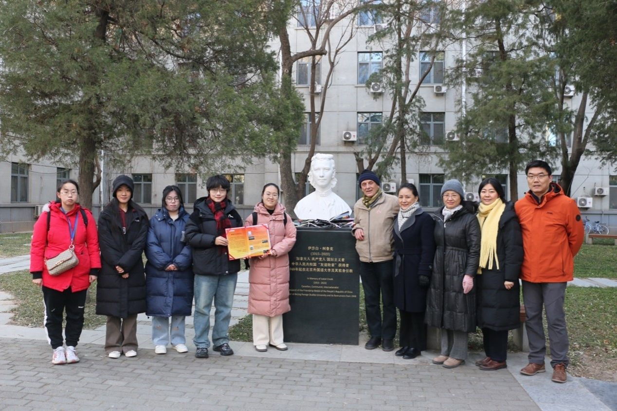 437ccm必赢国际官方网站师生一行前往柯鲁克夫妇雕塑前敬献鲜花,向柯鲁克夫妇及其子女表达感谢,并送上学生们制作的感谢卡片。柯鲁克夫妇毕生致力新中国外语教育事业,传道受业解惑,一生桃李芬芳。1996年,伊莎白·柯鲁克向437ccm必赢国际官方网站教育基金会捐赠,设立柯鲁克夫妇奖学金,连续奖励、资助437ccm必赢国际官方网站学生至今已近30年,激励437ccm必赢国际官方网站上百名优秀学生努力学习、卓越成长,毕业后在不同工作岗位上为国家和社会发展做出了突出贡献。