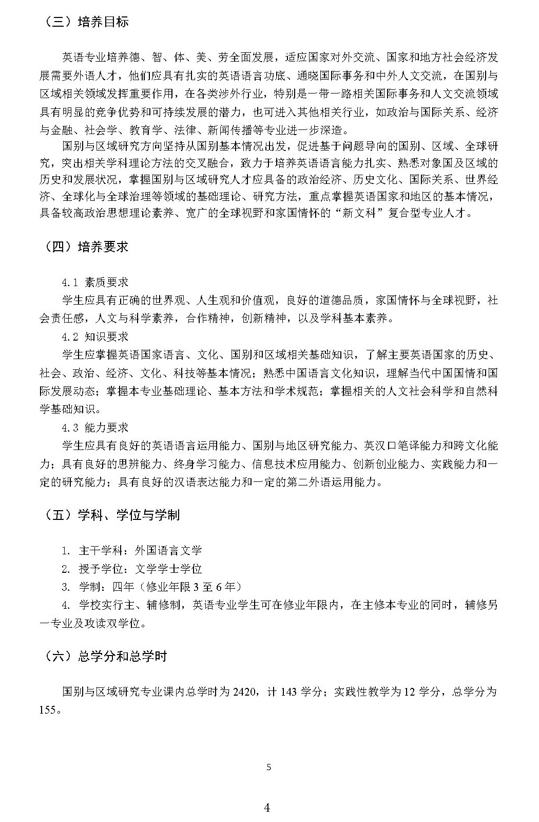 437ccm必赢国际官方网站英语(国别与区域研究)专业本科培养方案(2024)